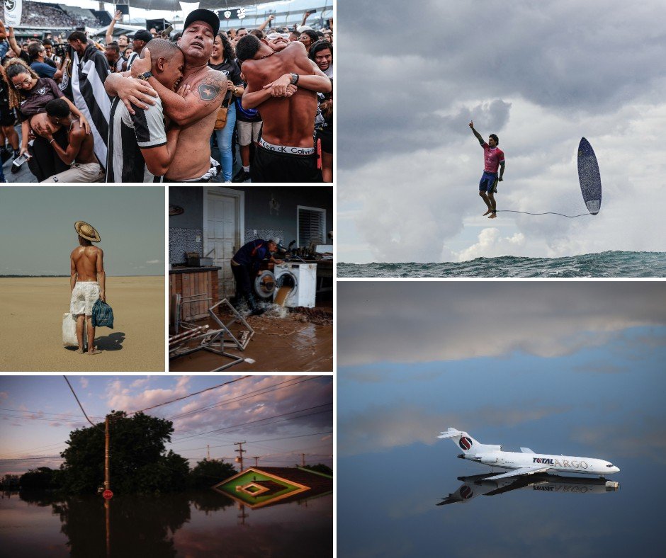 O Brasil também se destaca em projetos internacionais, à exemplo da série sobre a seca na Amazônia, do mexicano Musuk Nolte, e a imagem do surfista Gabriel Medina, captada pelo francês Jerome Brouillet, após a manobra que rendeu a conquista de medalha olímpica em Paris.
