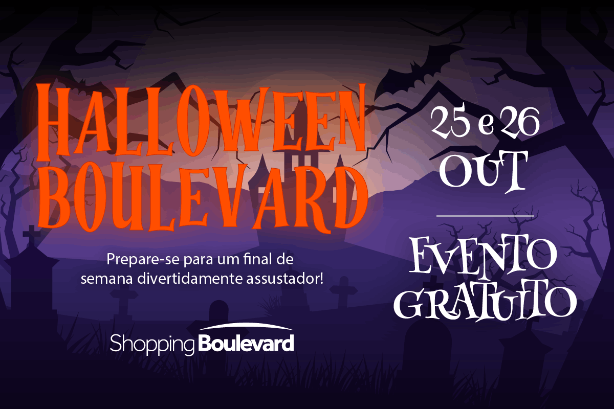 Já no dia 26 de outubro, o Boulevard apresenta um circuito de brincadeiras, com atividades interativas como oficina de marionete, boliche fantasma, acerte o monstro e o divertido bocão da bruxa, proporcionando momentos de lazer e criatividade para toda a família.