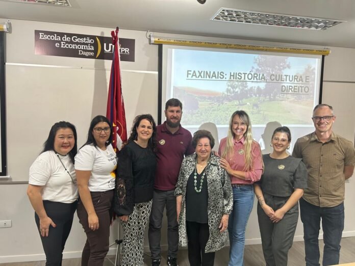 CURITIBA, PR – No dia 6 de outubro de 2025, o campus Curitiba da Universidade Tecnológica Federal do Paraná (UTFPR) foi palco do evento “Faxinais no Paraná: História, Cultura e Direito”. A iniciativa, resultado de uma parceria entre a Prefeitura Municipal de Rebouças, o Programa de Pós-Graduação em Administração (PPGA) da UTFPR e a IG Mathe, contou com a participação especial da Pioneira nos estudos dos Faxinais do Paraná, com 6 anos de pesquisa-ação, Profa. Dra. Maria Magdalena Nerone, autora do livro “Sistema Faxinal: terras de plantar, terras de criar”, e da profa. Doutoranda Ana Amélia Nerone Araujo, também pesquisadora no tema dos faxinais no âmbito jurídico. Além disso, teve a participação especial da Coordenação do Sipam da Erva Mate, registrando lotação completa, ao reunir alunos da universidade, empresários, empreendedores, acadêmicos e entusiastas da cultura paranaense.
