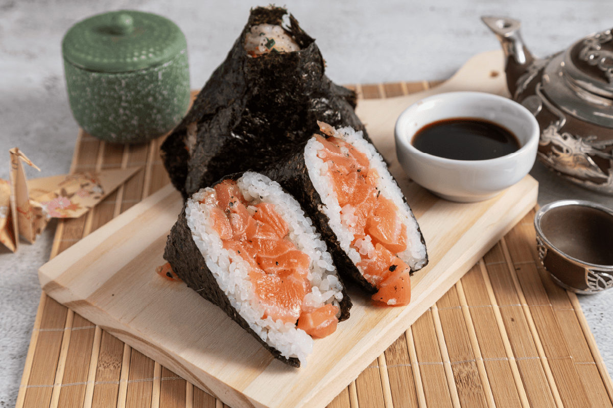 Os onigiris podem ser recheados e simples, tendo opções salgadas, doces e veganas. Além disso, no cardápio também é possível encontrar combos e bebidas.